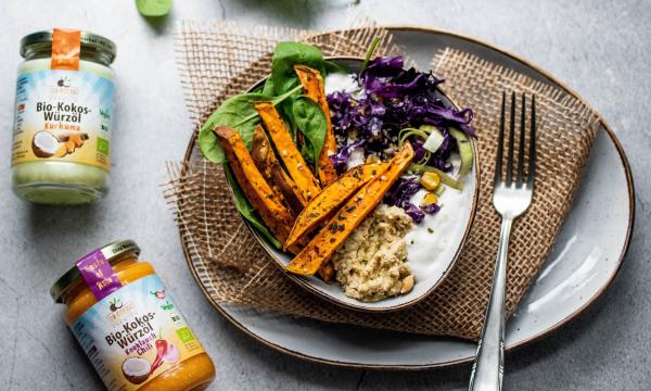 Selbst Dressings und Dips oder unsere Backrezepte wie unser fluffiges, veganes Haselnuss-Babka oder der exotisch-frische Käsekuchen am Stiel freuen sich über einen kleinen Kokos-Kick.