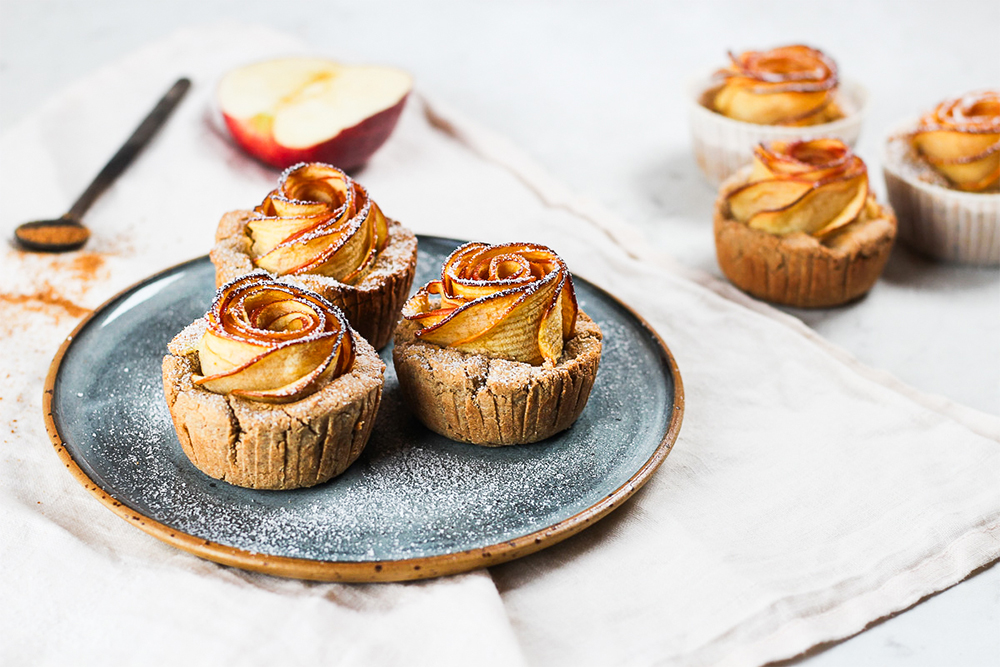 Apfel-Rosen-Muffins mit Liebe gebacken. Vegan, glutenfrei und eine himmlisch süße Idee mit wenig Zutaten!