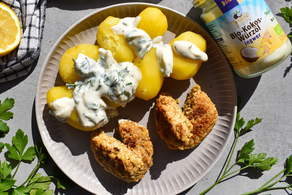 - Zusammen mit den Kartoffeln und etwas Dip servieren.