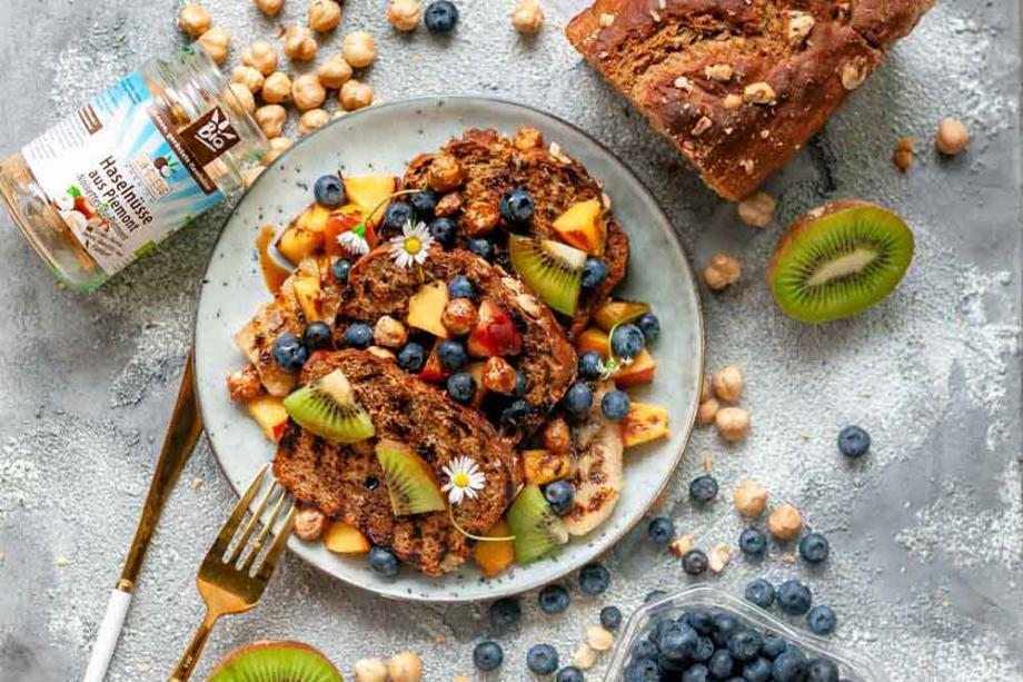 - Das Brot mit dem gegrillten Obst garnieren und nach Wunsch mit Sirup toppen.