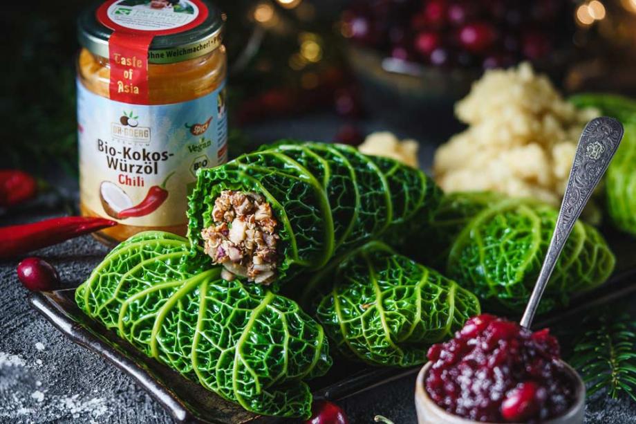 - Kohlrouladen zusammen mit dem Cranberry-Chutney servieren.
