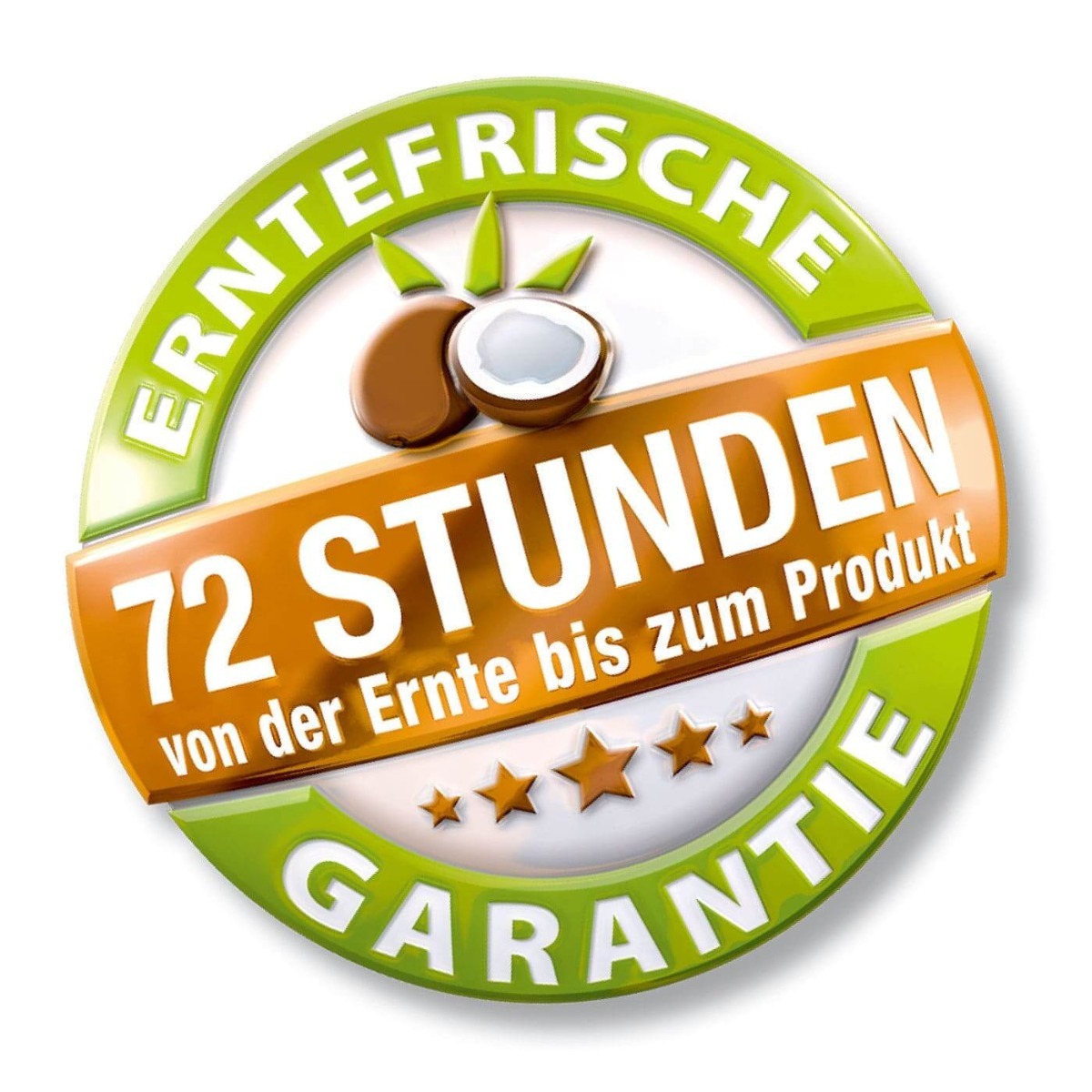 Frisch von der Ernte in die Presse – das ist leider nicht selbstverständlich. Einige Anbieter lagern Kokosnüsse auf große Halden oder lassen sie am Straßenrand trocknen. Nüsse, die mehrere Monate alt sind, bevor sie verarbeitet werden – das ist keine Seltenheit und hat natürlich entsprechende Konsequenzen für die Qualität und den Geschmack des Öls. Die bessere Alternative sind erntefrische Bio-Kokosnüsse. Bei Dr. Goerg etwa wartet keine Nuss nach der Ernte länger als 72 Stunden auf ihre Verarbeitung. So wird vermieden, dass Lipasen und andere Enzyme ihre Arbeit beginnen und die Nuss zersetzen – ein stechender Geschmack wäre die Folge. Auch mit Insekten- oder Pflanzenschutzmitteln kommen die Kokosnüsse nicht in Berührung. Das ist eben Qualität im Glas!