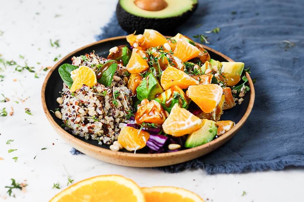 Quinoa-Salat mit Mandelmus-Dressing. Nur mit den besten Zutaten für dein Immunsystem und super, wenn's mal schnell gehen muss!