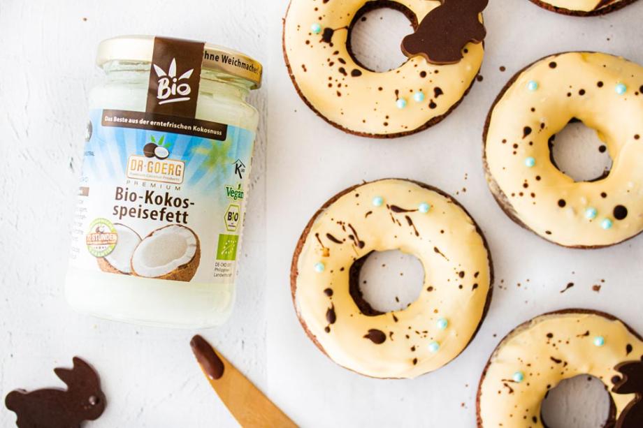 - Weiße Schokolade schmelzen, Donuts hineintunken, nach Lust und Laune dekorieren und fertig sind die veganen Schokoladen Donuts.