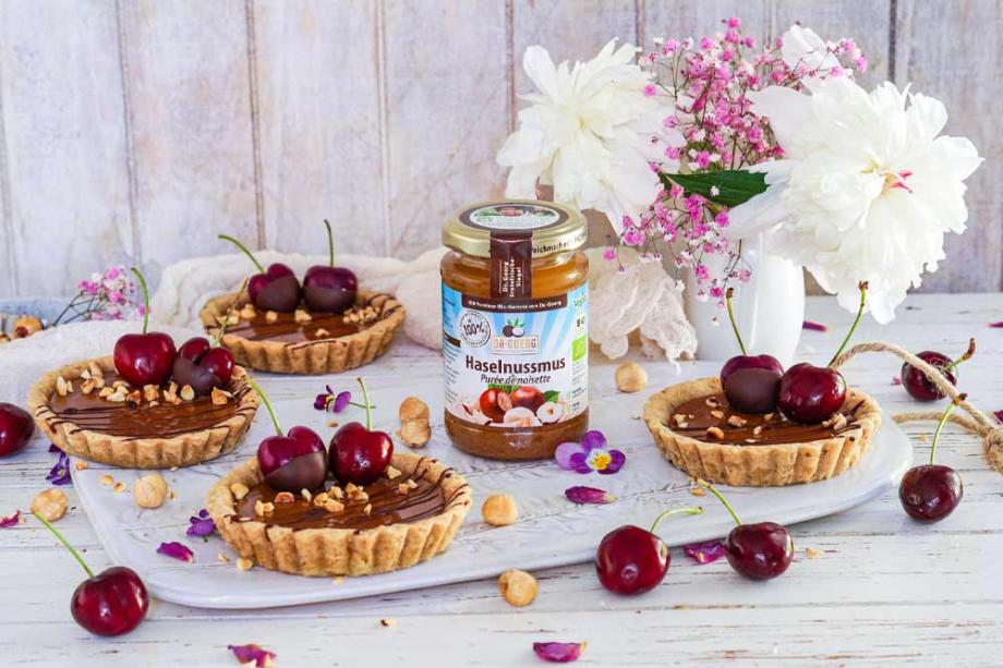 Unser Tartelettes Rezept lädt definitiv zum Träumen ein. Ein veganer Mürbeteig, eine zarte Haselnusscreme getoppt mit Früchten machen unsere Haselnuss-Kirsch-Tartelettes unwiderstehlich lecker!