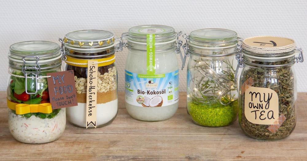 Ganz im Sinne des aktuellen Upcycling-Trends bietet das Dr. Goerg Premium Bio-Kokosöl im Bügelglas vielseitige Verwendungsmöglichkeiten. Ist das Glas leer, beginnt der kreative Teil: Wie wäre es etwa mit einer stylischen und sicheren Aufbewahrungsmöglichkeit für Müsli, losen Tee oder Ihre Lieblings-Cookies? Eine Backmischung zum Verschenken macht sich besonders gut im stilvollen Weckglas und auch die schönsten Urlaubserinnerungen finden in Ihrem Bügelglas den perfekten Platz. Ganz unter dem Motto "Mehrweg gleich Mehrwert" haben wir einige Inspirationen und nachhaltige DIY-Ideen mit Bügelgläsern für Sie zusammengestellt. Lassen Sie sich inspirieren!