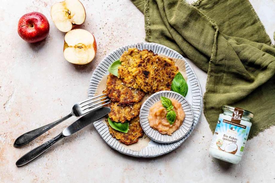 6. Die Kartoffelrösti jeweils mit etwas Apfelmus servieren und genießen.